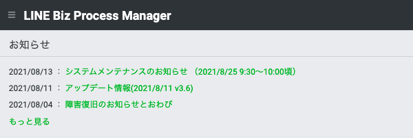 お知らせは、メニューバーの下段に表示されるスペースにて確認できます。