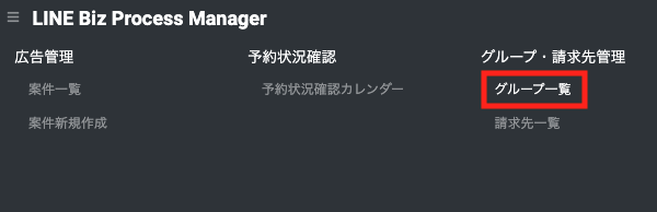 1)メニューバーの グループ⋅請求先管理 > [グループ一覧]をクリックする