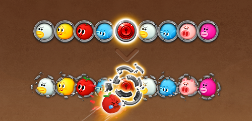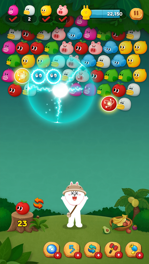 バブルを投げてライン爆弾を当てると、爆弾のある列とその下の列にあるバブルがすべて下に落ちます。