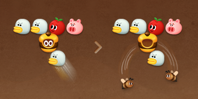 :選んだバブル1つと、周りのバブルを最大で6つまで消します。ただし、お邪魔バブルは残ります。