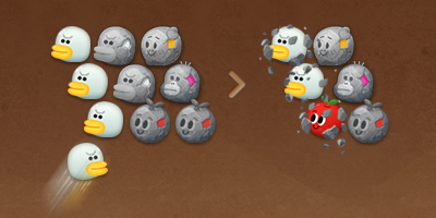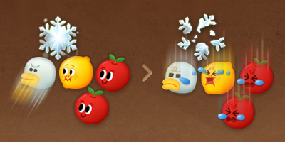 :パンチを投げて進路にあるバブルをすべて消します。ただし、一部のお邪魔バブルは残ります。
