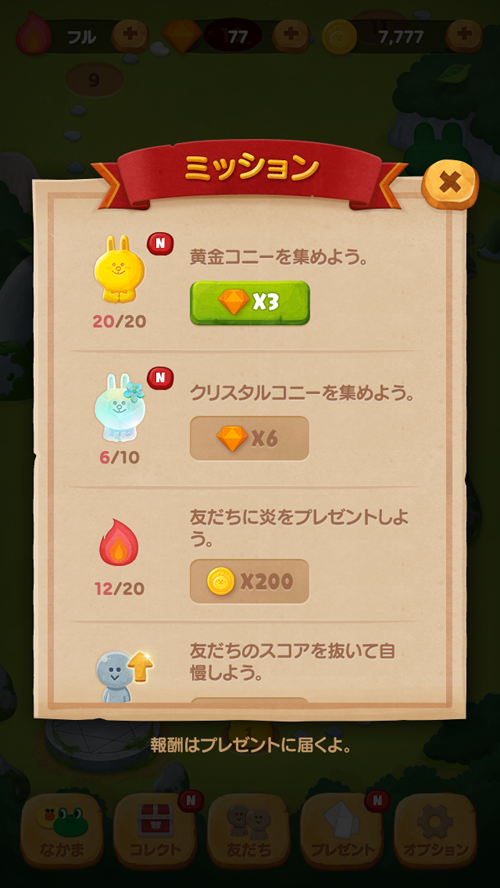 ステージ別に初めてプレイする時には点数により銅、銀、または黄金コニーがゲットできます。エピソードのすべてのステージで黄金コニーをゲットすれば該当ステージでは最後の段階のクリスタルコニーの獲得にチャレンジできます。特別なプレイヤーしか手に入れられないクリスタルコニーを集めてみましょう!