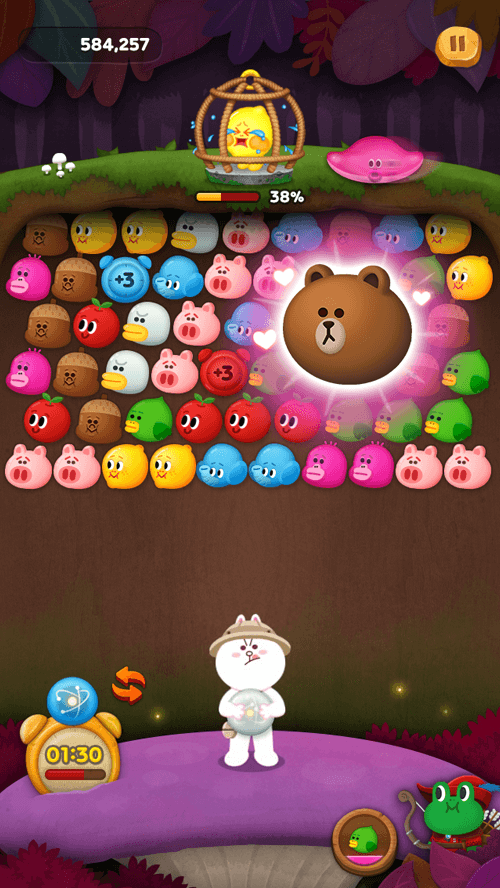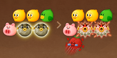 3개의 버블을 먹거나, 콤보폭탄을 이용하면 없앨 수 있습니다.