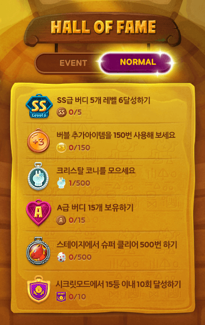 미션으로 주어진 종류의 버블만 정해진 개수대로 수집하는 모드 입니다.