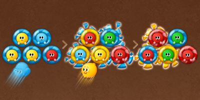 컬러 톱니 바퀴는 같은 색의 버블들과 연결하면 제거할 수 있어요!