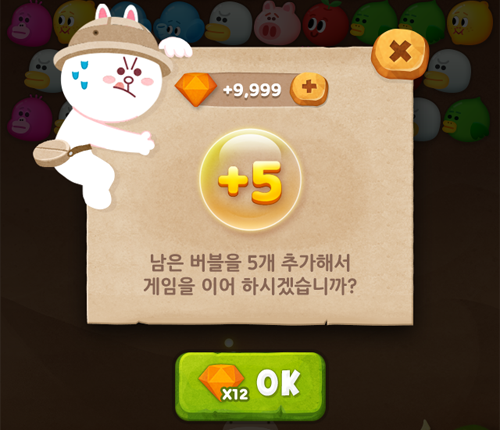 +버블을 터뜨리면 슈팅 버블을 추가로 획득 할 수 있습니다.