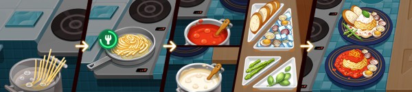 1. 鍋をタップしてゆでたパスタをフライパンに入れます。
