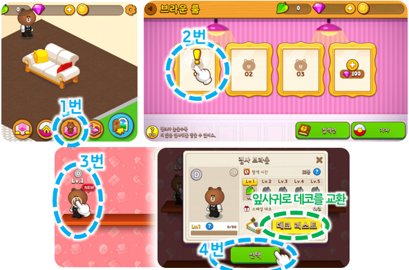 - 테마 별로 세트로 구성된 데코 4개 이상을 배치 또는 특정 리틀 브라운을 배치하면 추가 점수를 받을 수 있습니다.
