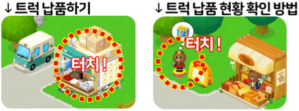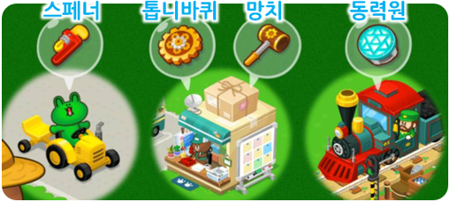 ⑥ 트럭 배달, 기차, 농장에 방문한 라인프렌즈 등을 통해 로봇 파츠 획득