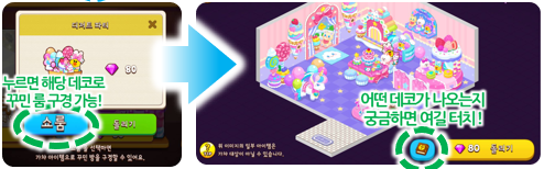 - 룸에 데코를 배치하면 [인테리어 점수]를 얻습니다.