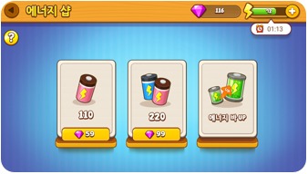 - [에너지 바 UP] 구매 시, 에너지 바의 크기가 110에서 150으로 영구 증가되며 구매 즉시 330 에너지가 충전됩니다.