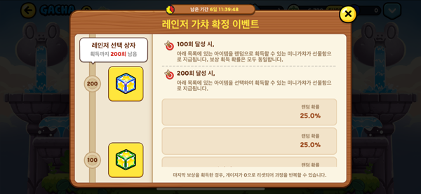 ⋅200회 선택 보상 획득 후 다시 0으로 리셋되며 이벤트 기간 내에는 이벤트를 반복해서 진행할 수 있습니다.