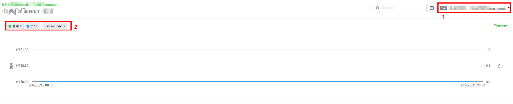 เลือกช่วงเวลาด้านขวาบนเพื่อตรวจสอบการเปลี่ยนแปลงของผลการแสดงโฆษณาตามต้องการ