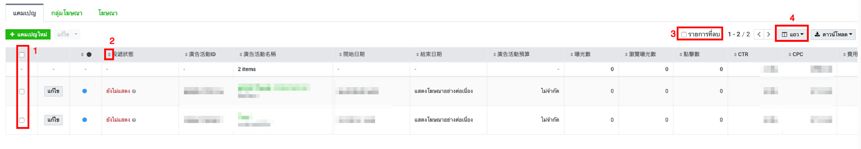 สามารถทำเครื่องหมายเลือกที่เช็คบอกซ์แล้วแก้ไขหรือลบองค์ประกอบที่เลือกได้พร้อมกันในคราวเดียว