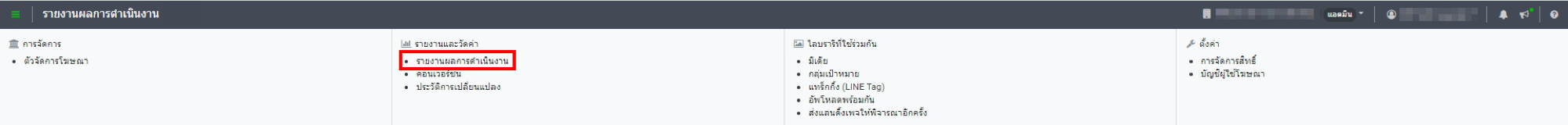 2. คลิกที่ "≡" ด้านซ้ายบนของหน้าตัวจัดการโฆษณา > ไปที่หัวข้อ "รายงานและวัดค่า" > คลิกที่ "รายงานผลการดำเนินงาน"