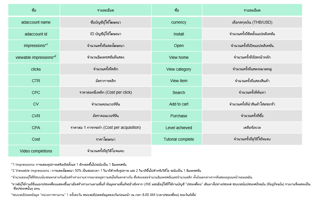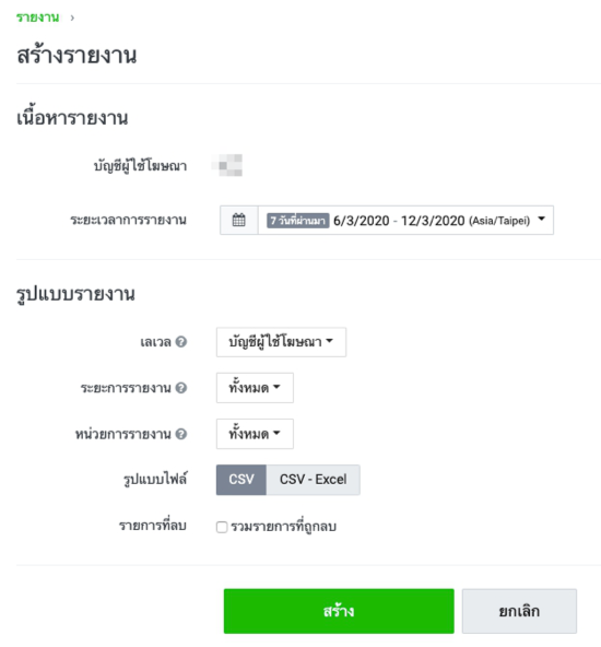 คุณสามารถตรวจสอบรายละเอียดผลลัพธ์การแสดงโฆษณาได้โดยดาวน์โหลดรายงานผลการดำเนินงาน
