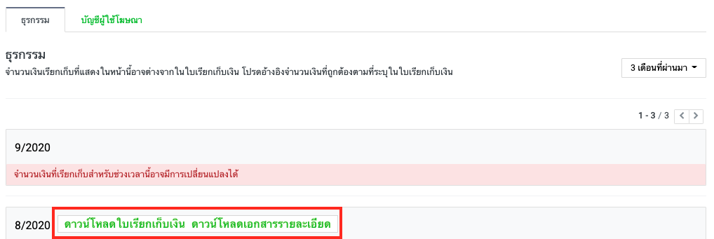 4. สามารถตรวจสอบรายละเอียดของค่าใช้จ่ายในการแสดงโฆษณาได้ที่ "ธุรกรรม"