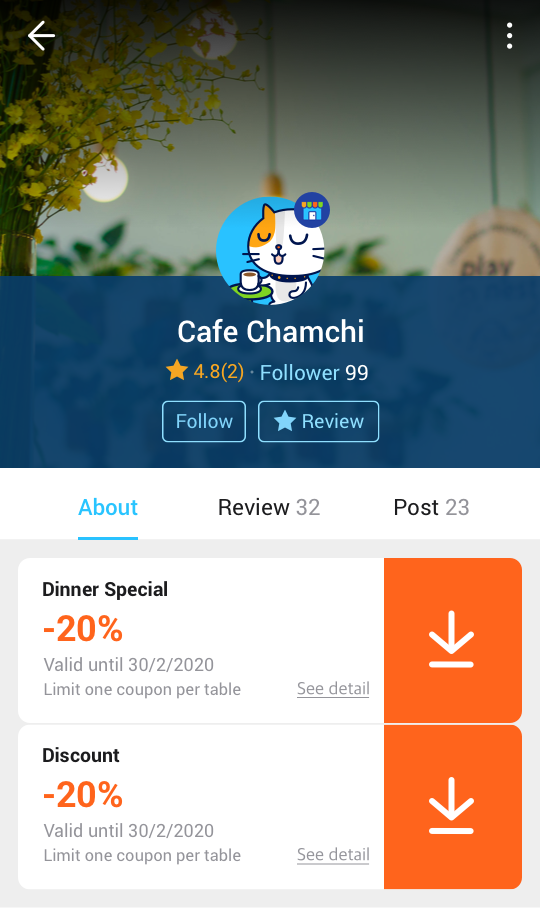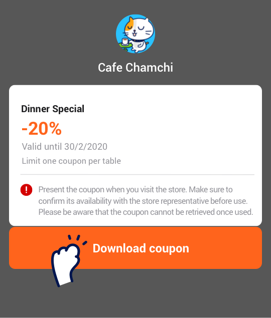 After a store owner issues a coupon, customers can download and redeem the discount directly at the offline store.