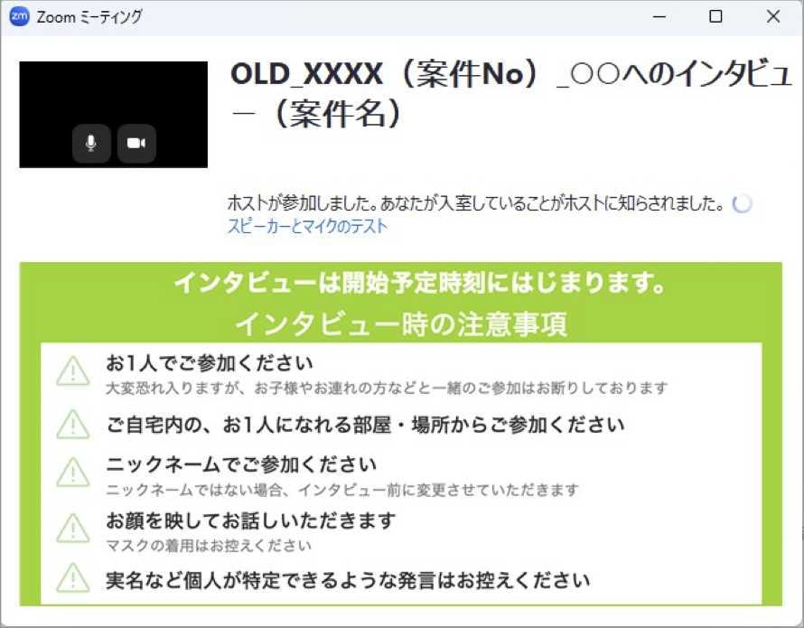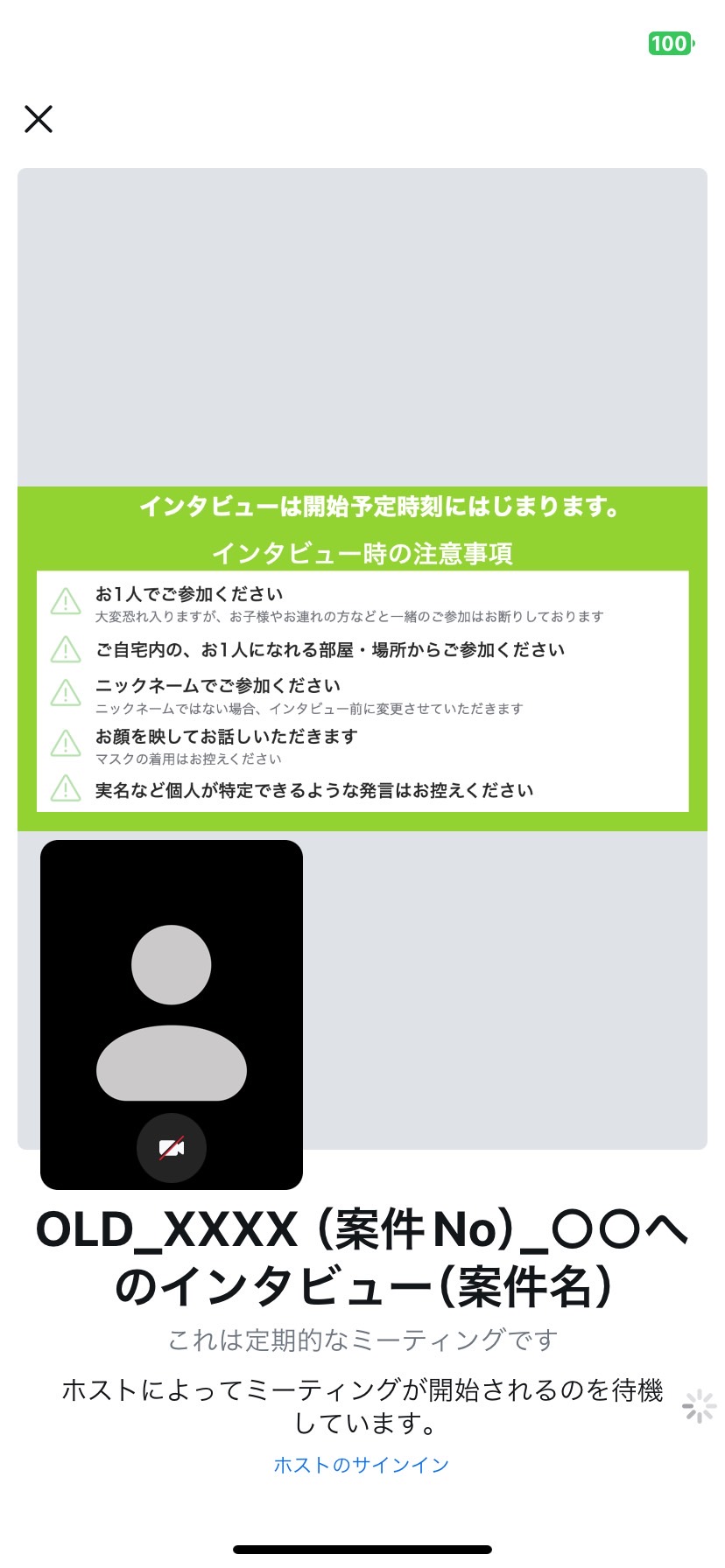 7. インタビュー開始まで、下記の画面のままお待ちください。